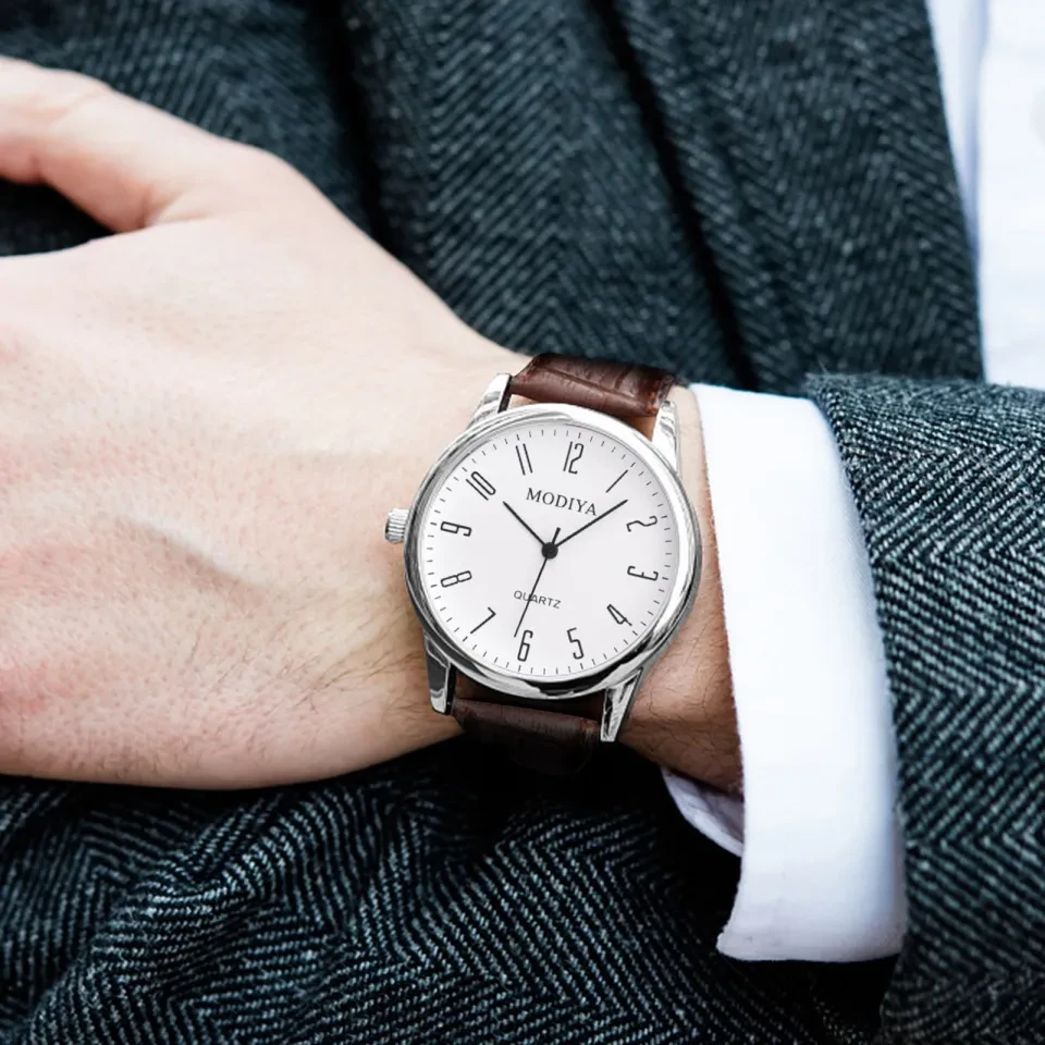 Elegant leather strap watch with minimalist dial.